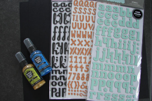 Baggrundsarket er fra Bella Blvd og hedder "Camped out". Det grønne mønsterark er fra en 8x8 papirblok jeg vandt engang. Blomster købt hos Scrap is Fun, bølgepap fugl og bølgepap blomst (under de gule blomster i øverste venstre hjørne) er fra the Nook. Jeg har brugt lidt blonde samt knapper og de små titelbogstaver er Tiny Type fra Cosmo Cricket.